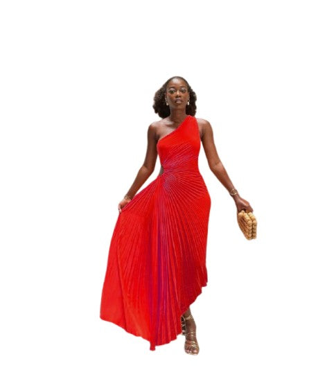 Crest One-Shoulder Pleated Dress 2024