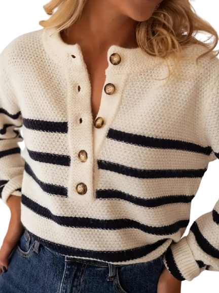 DualGuard | Striped sweater with round neckline and button placket for effortless style