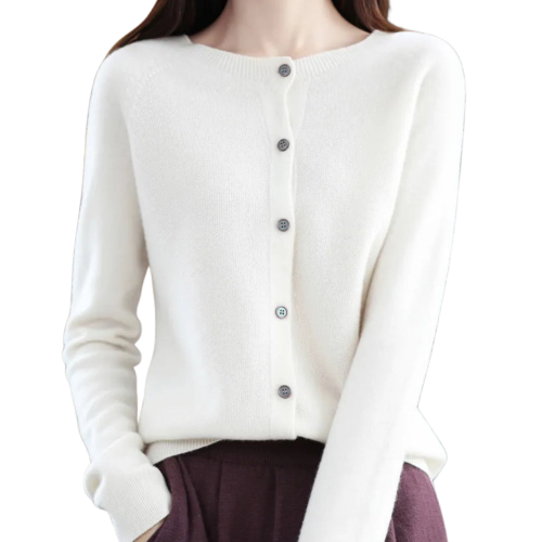 Finesse - Women's Wool O-Neck Cardigan Sweater